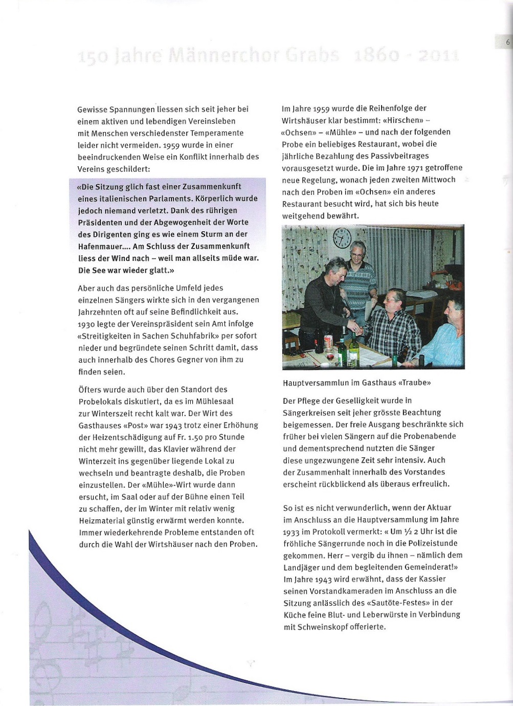 Festschrift Bestellungen von Festschriften zum Preis von CHF 15.-- an ---------------------------------------------------------------------------------------------- Es ist eine gemeinsame Festschrift (150 Jahre Männerchor Grabs - 75 Jahre Skiclub Margelkopf) entstanden.. Für die Redaktion zeichnen Werner Vetsch (MC Grabs) und Sämi Rhyner (SCM) verantwortlich. Sie waren monatelang am Durchforsten der alten Protokolle und Akten und trugen hochinteressante Sachen und Reminiszenzen zusammen. Das Resultat darf sich sehen lassen! Die Gestaltung der Seiten durch die Firma Tanner Werbetechnik ist abgeschlossen. Nun folgt noch der Druck. Hier wurde uns durch einen nicht genannt sein wollenden Gewährsmann exklusiv für unsere Website ein erster hochgeheimer Auszug mit je einer Seite für den Skiclub und für den Männerchor zugespielt: (für Vergrösserung bitte die entsprechende Seite anklicken!) Hauptsponsor der Festschrift: Raiffeisenbank Werdenberg Co-Sponsoren der Festschrift: Tanner Werbetechnik Grabs / Gutenberg Printing Performance Schaan