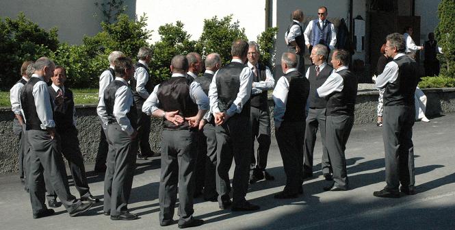 Schon relativ früh aus den Federn mussten am Sonntag Morgen die Grabser Männerchörler, denn bereits kurz nach neun Uhr hatten sie sich in der Kirche Valens dem Publikum und der Jury zu stellen, und das Einsingen war eine halbe Stunde vorher. Etwas länger schlafen durften die Sänger des Sängerbundes Buchs, ihr Auftritt war kurz nach 12 Uhr. Wegen Abwesenheit des Dirigenten Christian Büchel wurde der Chor vom Vizedirigenten Rolf Keller geleitet. Eine solche Situation ist sowohl für den betroffenen Chor als auch für den Interims-Dirigenten nicht ganz einfach.