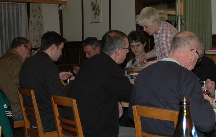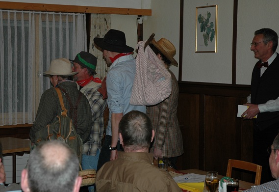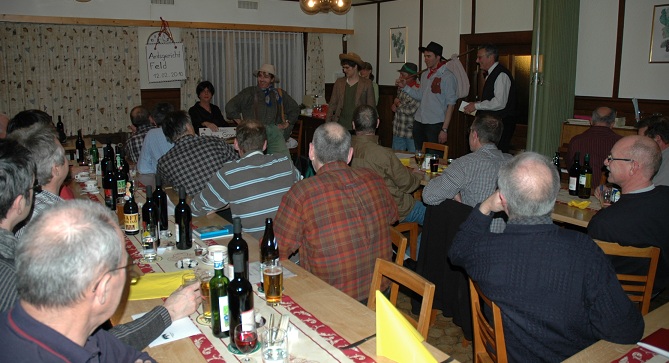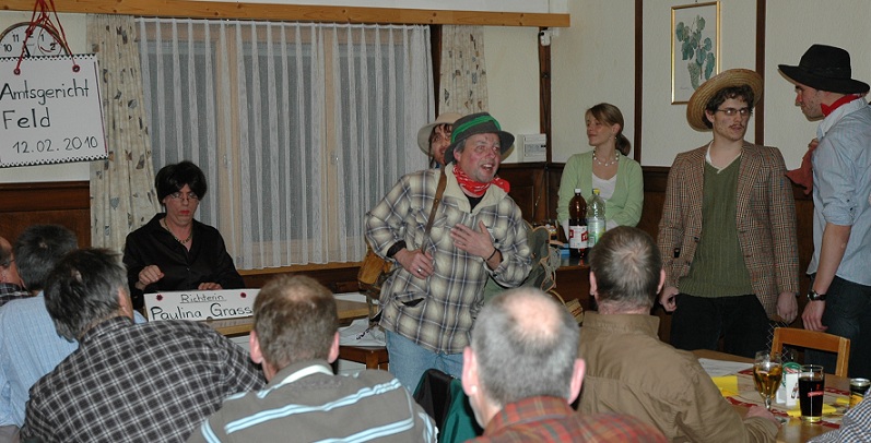 Nach dem offiziellen Teil und nach einem feinen Nachtessen aus der Trauben-Küche tagte schliesslich noch das „Amtsgericht Feld“ unter der Leitung der gestrengen Richterin Pauline Grasso, welche einige Vagabunden zu ihrer gerechten Strafe verurteilen wollte. Diese verteidigten sich alle bravourös in singender Form. Zum Ausklang pflegten die Männerchörler das freie Singen, begleitet von Pianist Ernst Frehner.