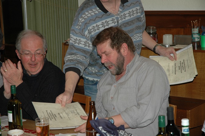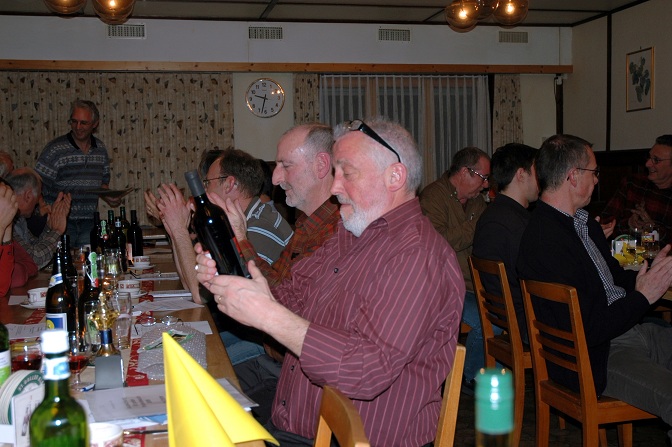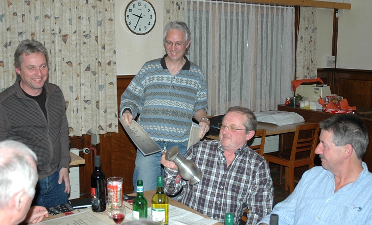 Dirigentin Anni Forrer lobte in ihrem Jahresrückblick ebenfalls den Einsatz der Chormitglieder, welche „von Kopf bis Fuss Sänger“ seien, und dokumentierte dies mit der Übergabe von passenden Sängersocken. Bibliothekar Hans Ruedi Vetsch konnte anhand seiner genau geführten Kontrollliste eine sehr hohe Präsenz der Sänger nachweisen, und die meisten durften denn auch ein kleines Präsent als Anerkennung entgegennehmen. Erfreulich war zudem der erneute Mitgliederzuwachs. Es durften an der Hauptversammlung gleich drei neue Sänger in den Chor aufgenommen werden.