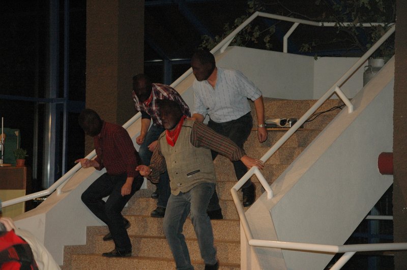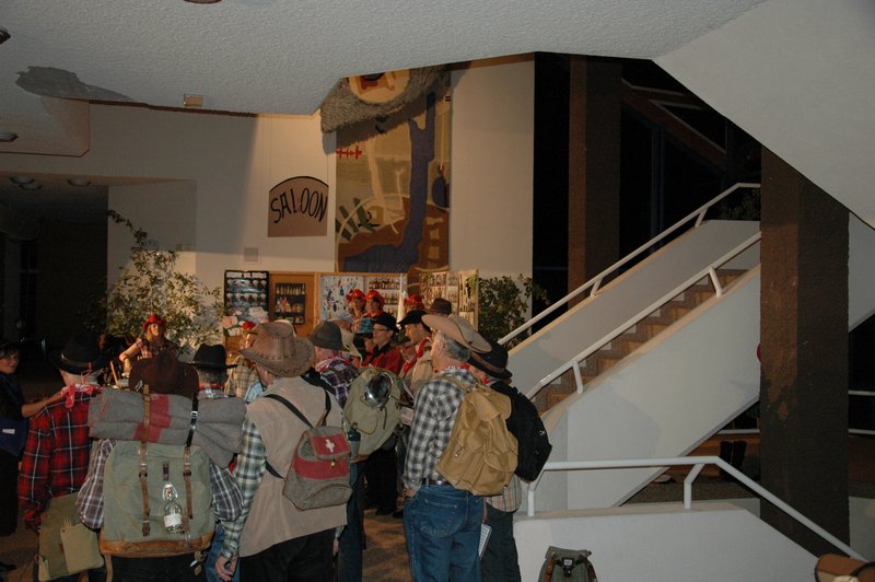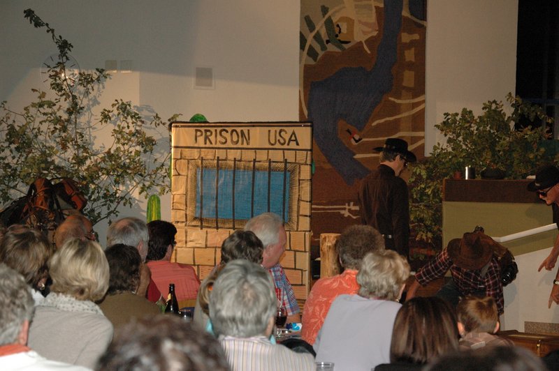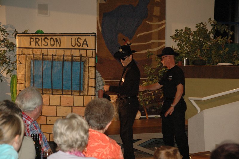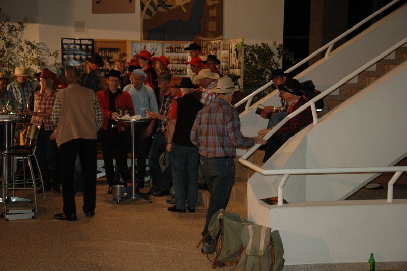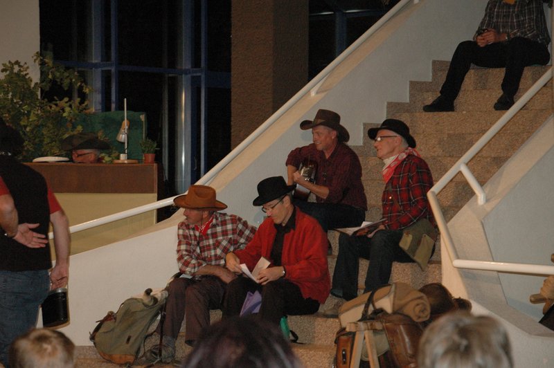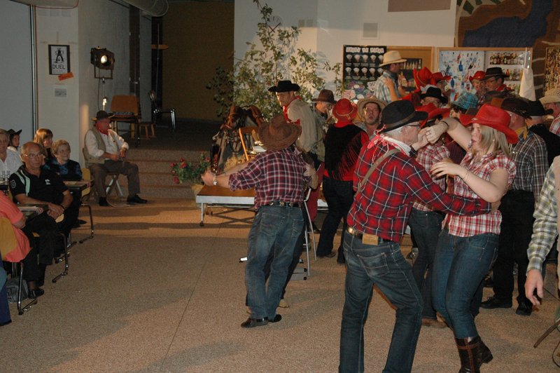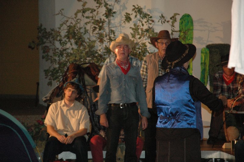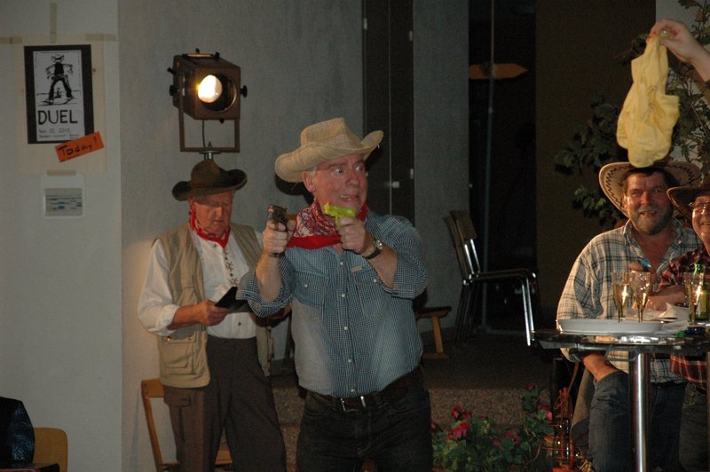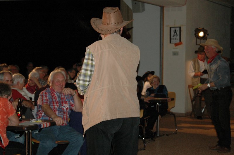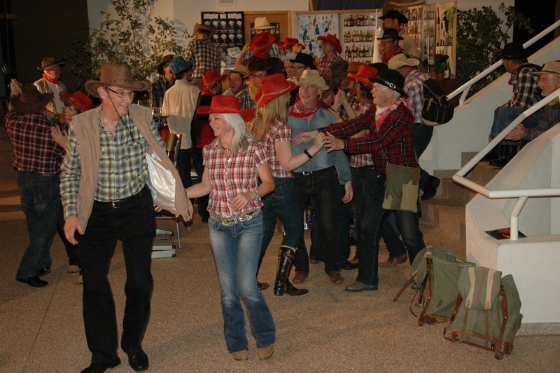 "Wildwest" - Singspiel des Männerchors Grabs Die Grabser Männerchörler gehen auf Reisen, nach Amerika in den "Wilden Westen". Nicht mit dem Flugzeug, wie dies heute Mode ist, sondern in altbewährter Manier mit dem Schiff. Doch schon bei der Ankunft in der Neuen Welt gibts die ersten Probleme mit den Gesetzeshütern, sei es wegen des Grabserschnapses im Gepäck, oder sei es wegen missverstandener Streiche im Hafenviertel. Dann ziehts die Männer weiter in den Westen. Hoch zu Pferd gehts durch die Prärien, übernachtet wird am Lagerfeuer, und hin und wieder wird im Saloon abgestiegen für einen Drink oder zu einer Show mit den Country Dancers. Natürlich wird auf dieser Reise auch viel gesungen. Bald naht jedoch der Tag der Heimkehr, die letzten Dollars werden noch für Drinks ausgegeben, und das Schiff bringt die Gesellschaft wieder zurück nach Haus. |