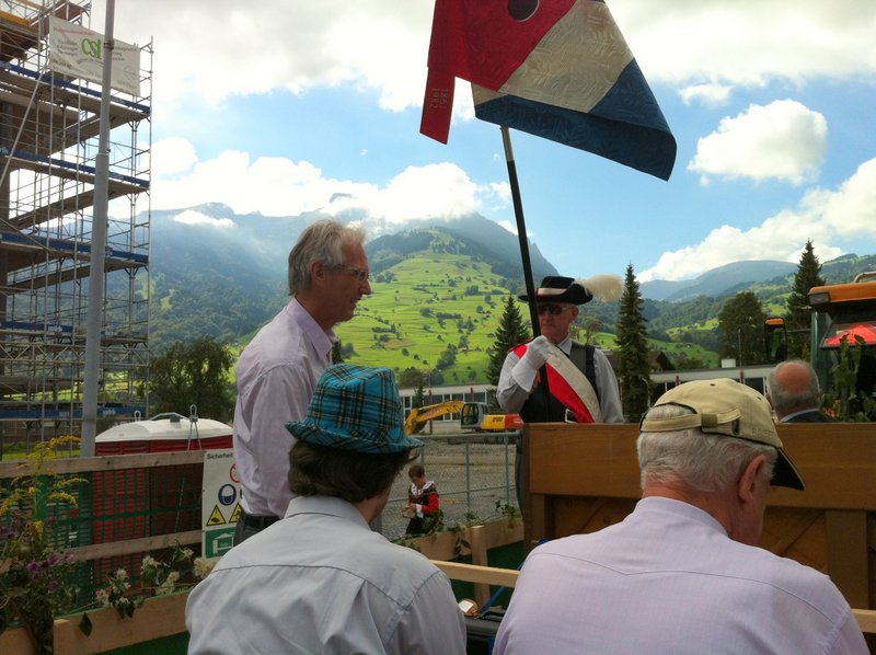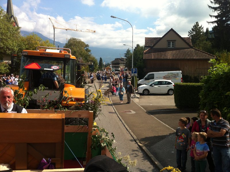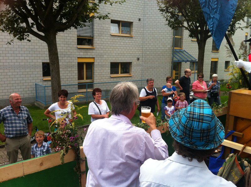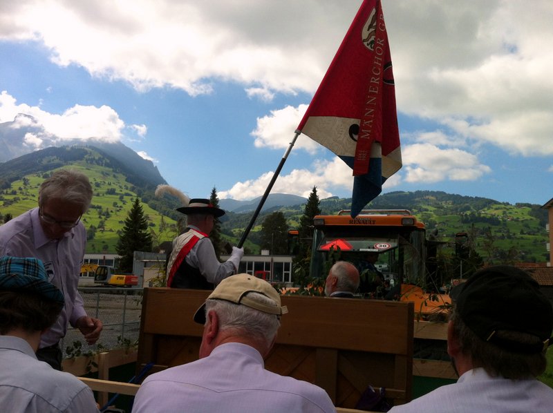 Phantastisches Wetter, zahlreiche begeisterte Zuschauer, ein passend hergerichtetes, bequemes Fahrzeug, ein gutgelaunter Männerchor, mit einem ebenso gutgelaunten Interimsleiter und Pianisten Ernst Frehner (unsere Dirigentin war beim ebenfalls teilnehmenden Gemischt Chor im Einsatz), kurzum: ein rundum gelungener Auftritt!