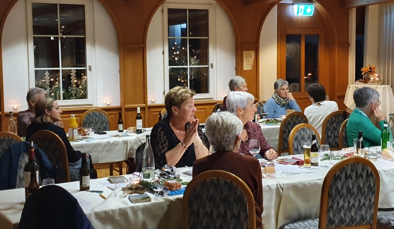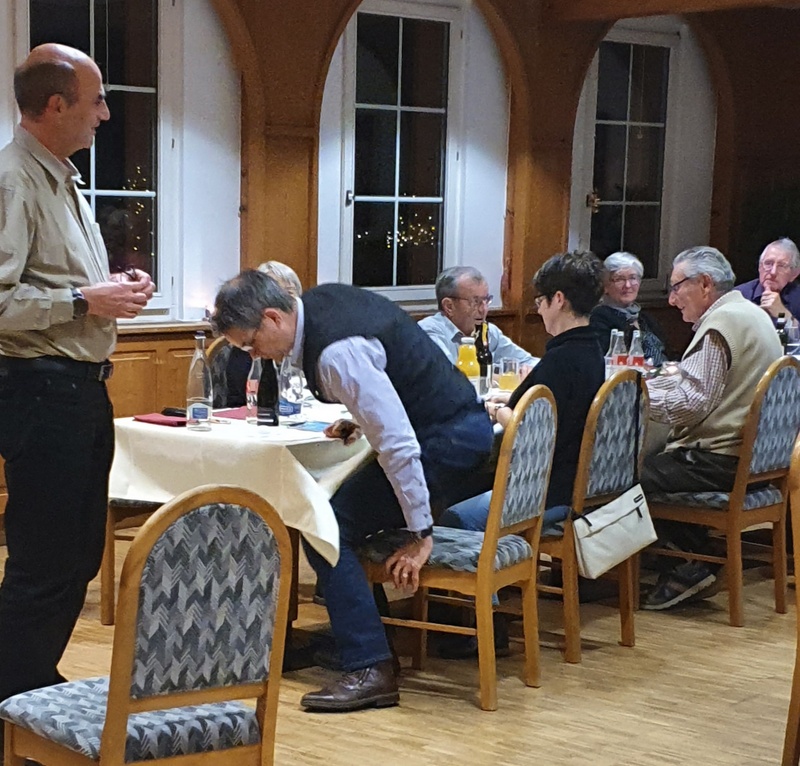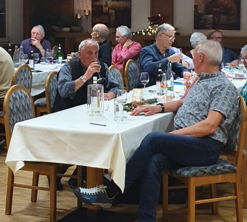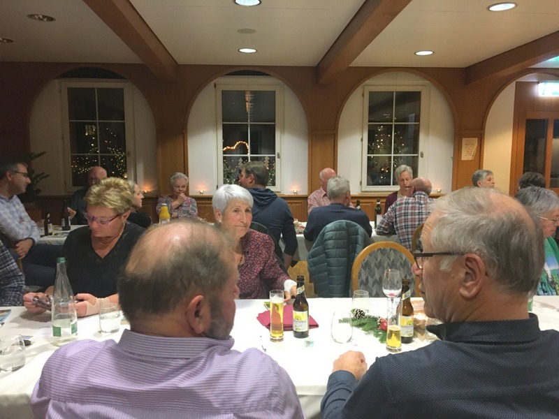 Der Männerchor hatte in diesem Jahr Glück! Wir konnten einige Auftritte in den letzten Wochen trotz Corona durchführen, zuletzt noch die gesangliche Begleitung der Gottesdienste im Advent. Und wir hatten nochmals ein Riesenglück mit der Durchführung unseres Schlussabends! Ganz kurz vor dem Inkrafttreten der neuesten Corona-Enschränkungen konnten wir unseren Jahresschusshock noch bei akzeptablen Bedingungen durchführen. Vorbereitet wurde der abwechslungsreiche Abend durch Urs, wofür ihm ein herzliches Dankeschön gebührt. Für einen Chlausauftritt war es kalendermässig zwar zu spät, doch sorgte das Duo Ernst und Hans für musikalische Unterhaltung, oder zumindest für musikalische Begleitung der durch die Anwesenden mitgesungenen Lieder. Wie immer sorgte die Schäfli-Küche für eine feine Verpflegung. Das Quiz mit dem Erkennen von sehr kurzen Ausschnitten von Liedern war teilweise recht anspruchsvoll, vor allem wenn das Stück noch rückwärts abgespielt wurde. Da brauchts wohl noch ein Zusatztraining.