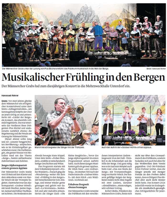 Konzert "Lieder der Berge", Samstag 27. April 2024, MZH Unterdorf,