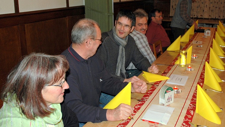 Dirigentin Anni Forrer lobte in ihrem Jahresrückblick ebenfalls den Einsatz der Chormitglieder, welche „von Kopf bis Fuss Sänger“ seien, und dokumentierte dies mit der Übergabe von passenden Sängersocken. Bibliothekar Hans Ruedi Vetsch konnte anhand seiner genau geführten Kontrollliste eine sehr hohe Präsenz der Sänger nachweisen, und die meisten durften denn auch ein kleines Präsent als Anerkennung entgegennehmen. Erfreulich war zudem der erneute Mitgliederzuwachs. Es durften an der Hauptversammlung gleich drei neue Sänger in den Chor aufgenommen werden.