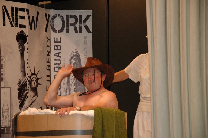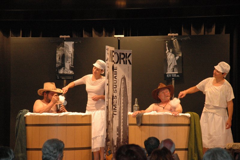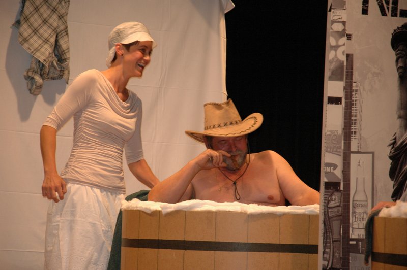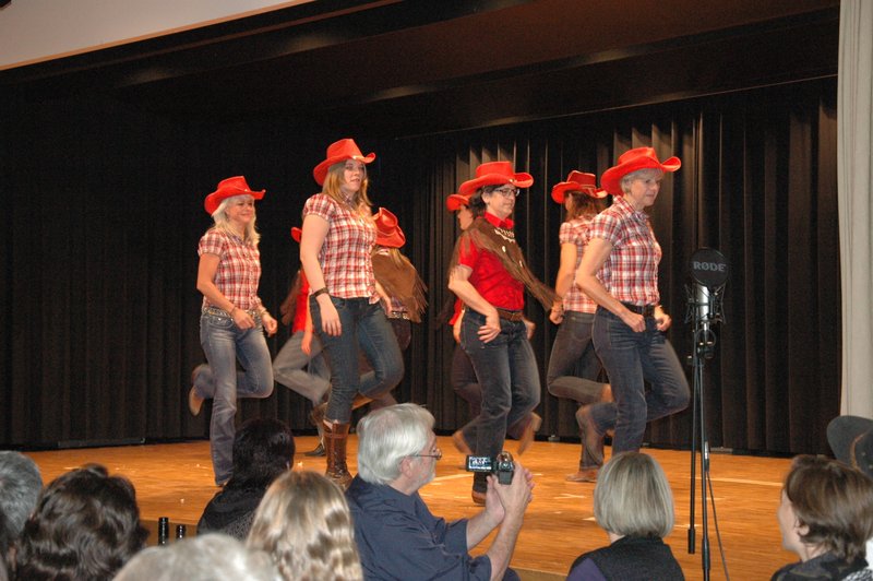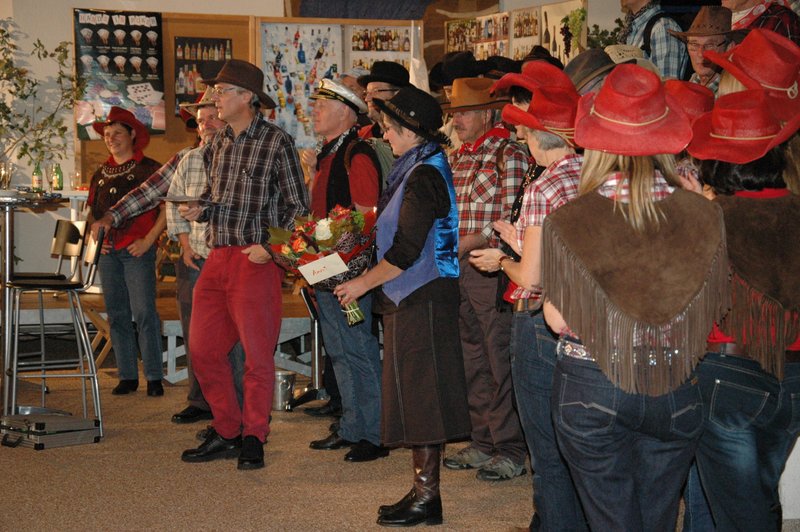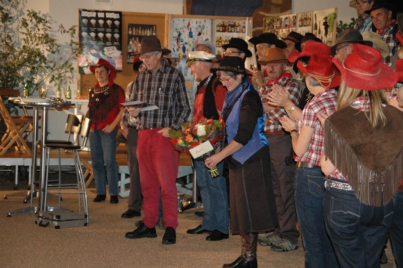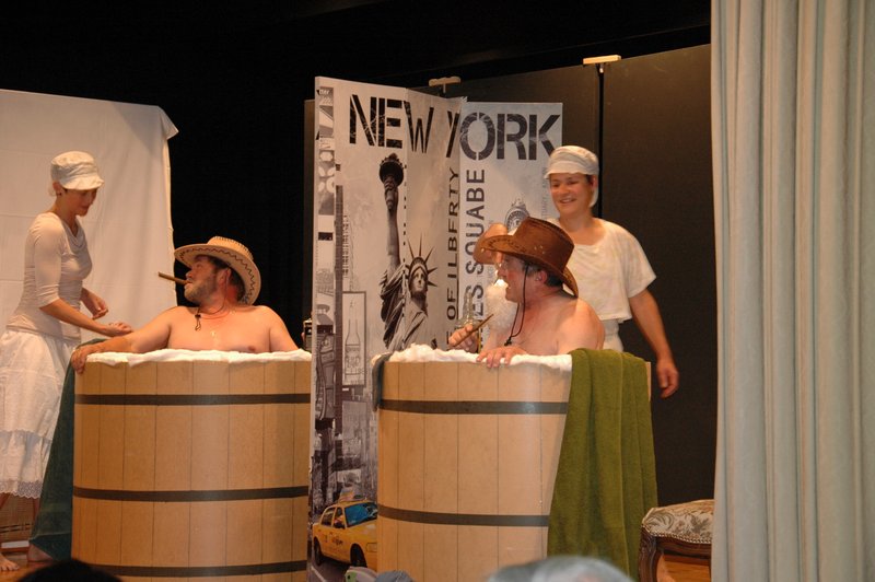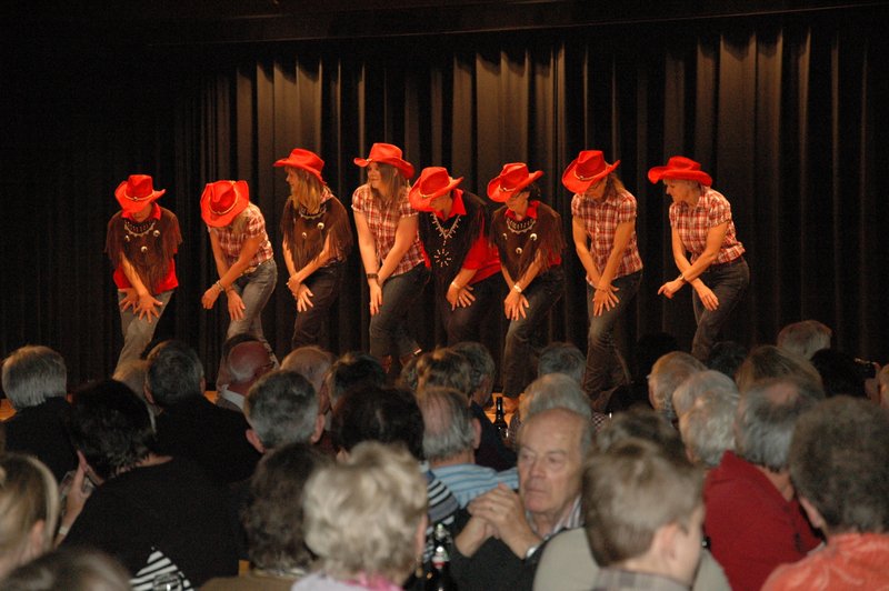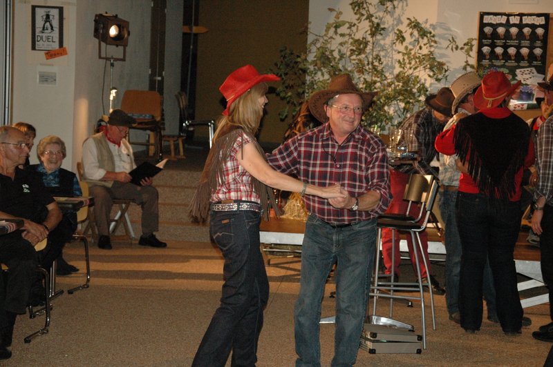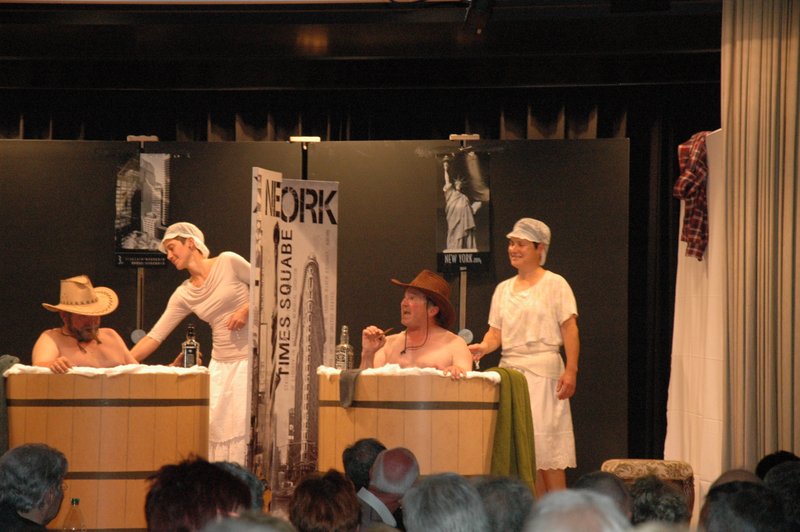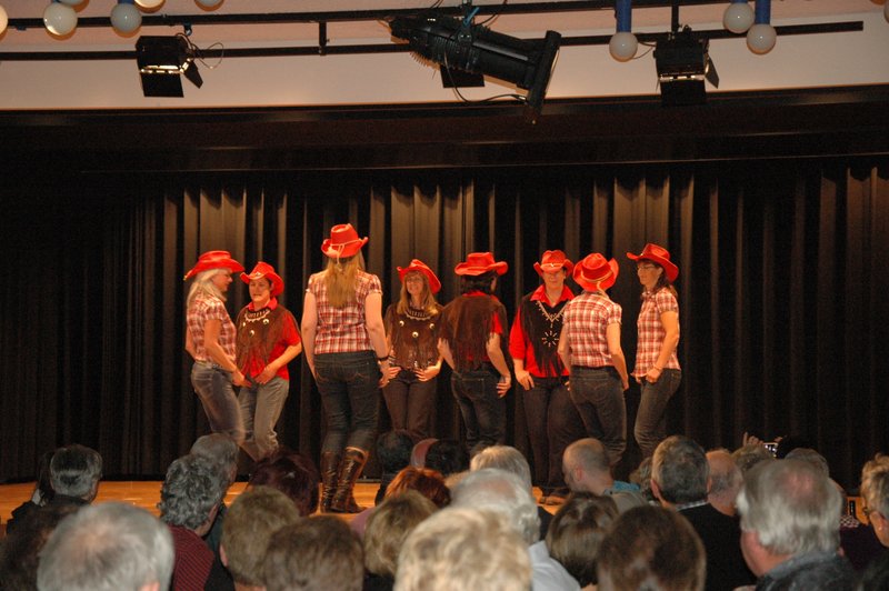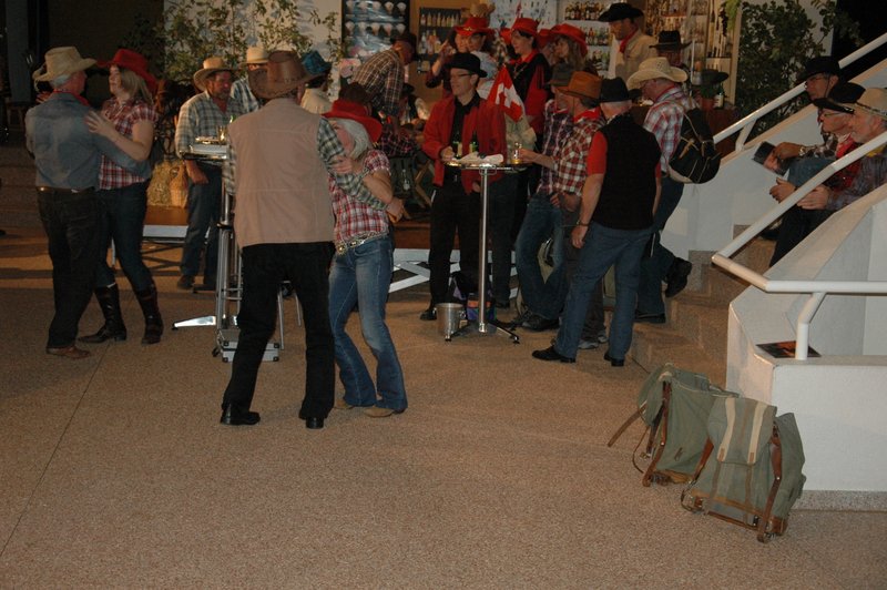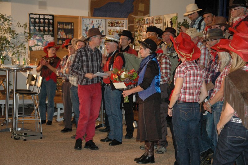 "Wildwest" - Singspiel des Männerchors Grabs  Die Grabser Männerchörler gehen auf Reisen, nach Amerika in den "Wilden Westen". Nicht mit dem Flugzeug, wie dies heute Mode ist, sondern in altbewährter Manier mit dem Schiff. Doch schon bei der Ankunft in der Neuen Welt gibts die ersten Probleme mit den Gesetzeshütern, sei es wegen des Grabserschnapses im Gepäck, oder sei es wegen missverstandener Streiche im Hafenviertel. Dann ziehts die Männer weiter in den Westen. Hoch zu Pferd gehts durch die Prärien, übernachtet wird am Lagerfeuer, und hin und wieder wird im Saloon abgestiegen für einen Drink oder zu einer Show mit den Country Dancers. Natürlich wird auf dieser Reise auch viel gesungen. Bald naht jedoch der Tag der Heimkehr, die letzten Dollars werden noch für Drinks ausgegeben, und das Schiff bringt die Gesellschaft wieder zurück nach Haus.  |