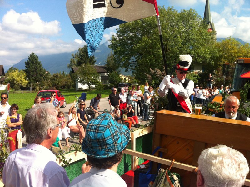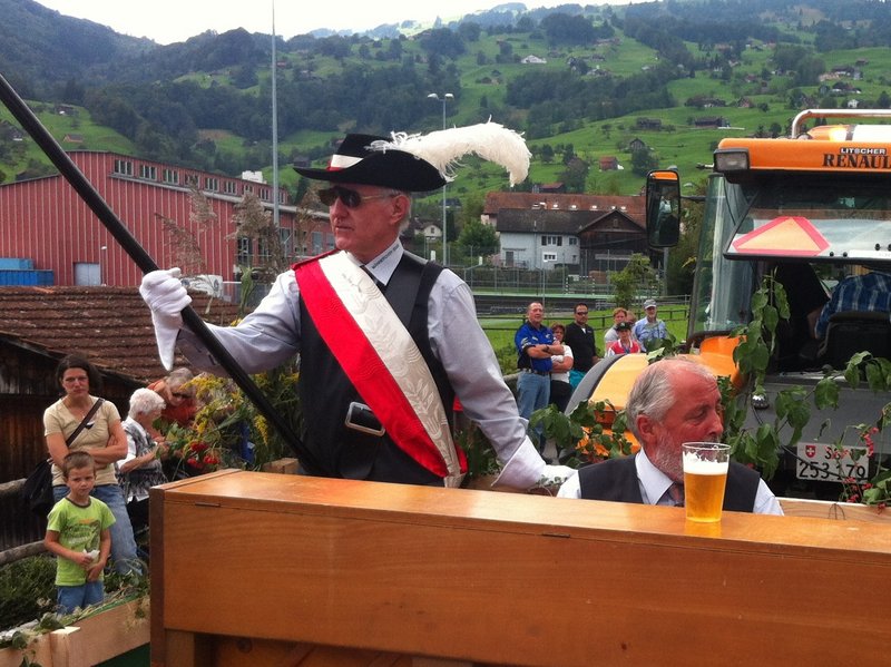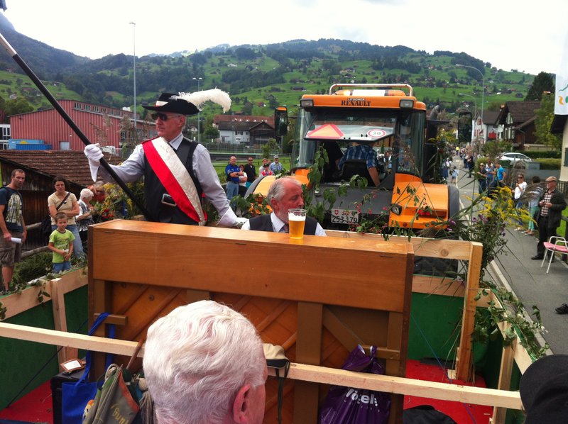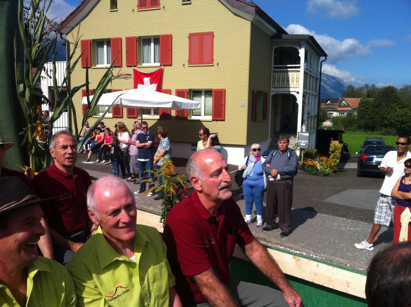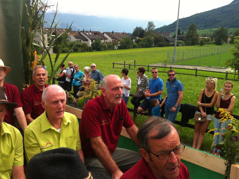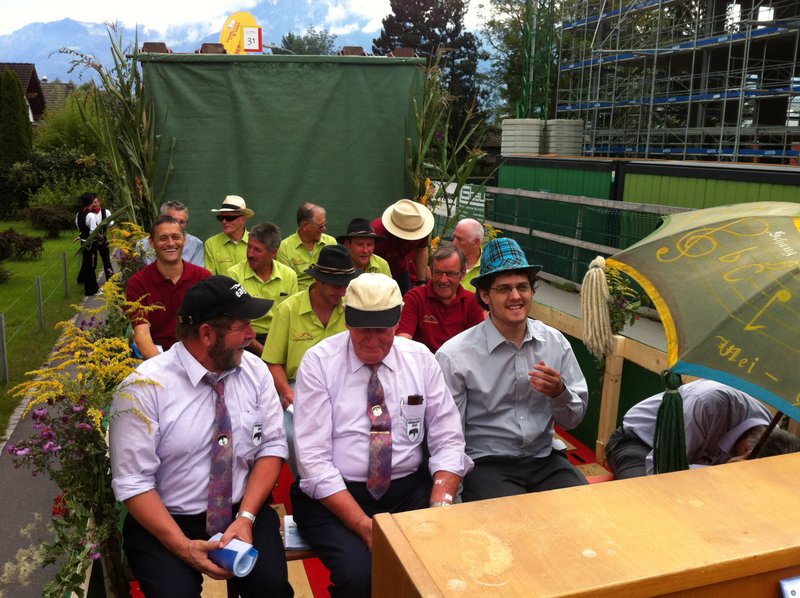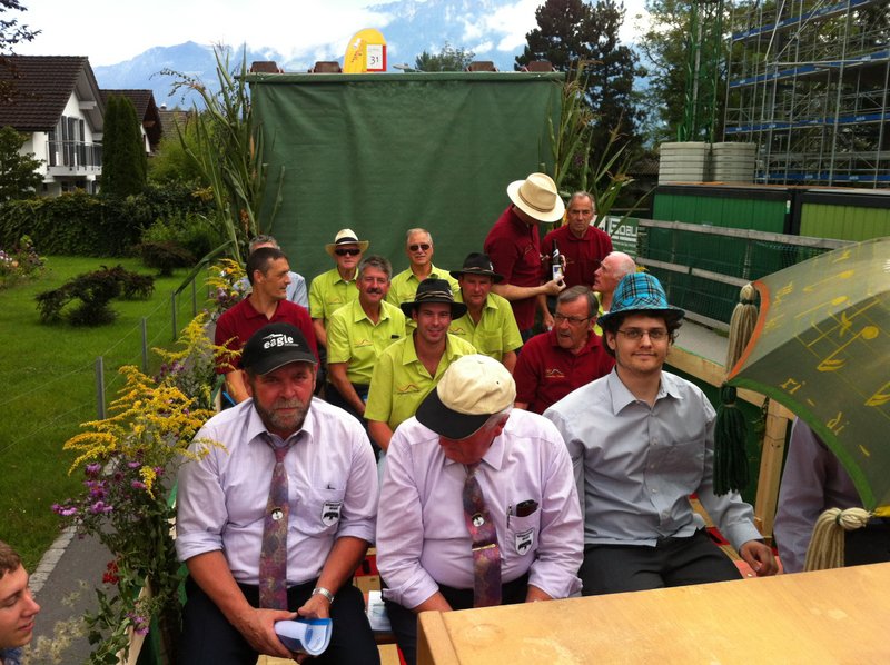 Phantastisches Wetter, zahlreiche begeisterte Zuschauer, ein passend hergerichtetes, bequemes Fahrzeug, ein gutgelaunter Männerchor, mit einem ebenso gutgelaunten Interimsleiter und Pianisten Ernst Frehner (unsere Dirigentin war beim ebenfalls teilnehmenden Gemischt Chor im Einsatz), kurzum: ein rundum gelungener Auftritt!