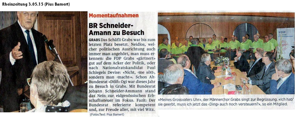 von links: Bundesrat Schneider-Ammann, neben Paul Schlegel und Nationalrat Walter Müller, vis-à-vis FDP-Kantonalpräsident Marc Mächler