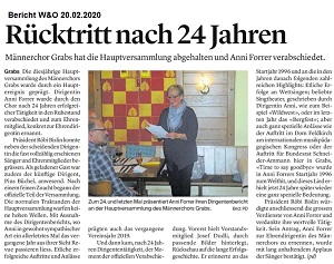 14. Februar 2020 Hauptversammlung des Männerchors im Thai-Grütli Verabschiedung Dirigentin Anni Forrer